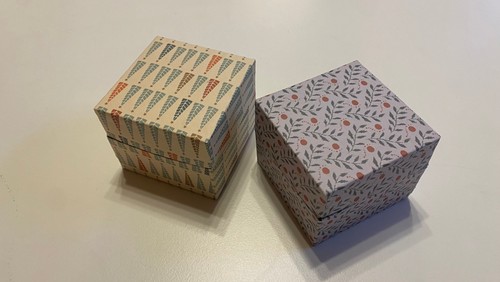 Med inspiration fra Kamma Rahbek laver vi firkantede æsker med instruktører Anne Margrethe Hvas og Susanne Ellingsen.