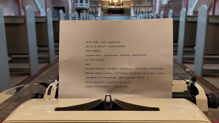 når du i stedet kan glæde dig til "HVID FREDAG" den 28. november kl. 16-18 i selskab med blandt andet Mickey Gjerris, Martin Ishøy, Jacob Høgsbro og Anders Vestergaard.