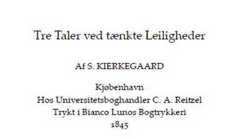 Over fire formiddage fra november til februar læses i fællesskab Søren Kirkegaards opbyggelige taler: ,Tre Taler ved tænkte Leiligheder', 1845.